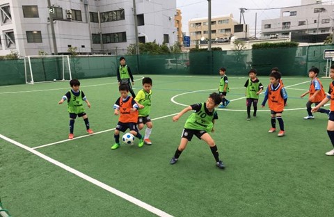 U4は人数の関係でクリニック形式で行いました。ボールを運んだり、コーンをかわしてシュートしたり、コーチと楽しくプレーしていました。